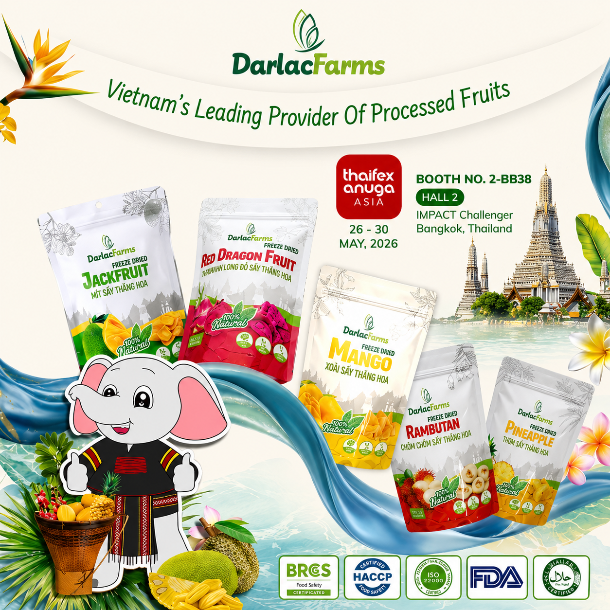 "Dak Lak - a land of great plateaus, blessed by nature with invaluable products, fertile land and fresh water. With youthful enthusiasm, the same desire to accompany farmers here to get rich on the vast and fertile land, Le Tai - MBA graduated student in Australia and Nguyen Huynh Minh Hanh - International student majoring in Pharmacy at Monash University, Australia decided to return to their homeland. The name "Darlac Farms" and the story of a brand of dried agricultural products imbued with the highland sunshine and wind also started there."