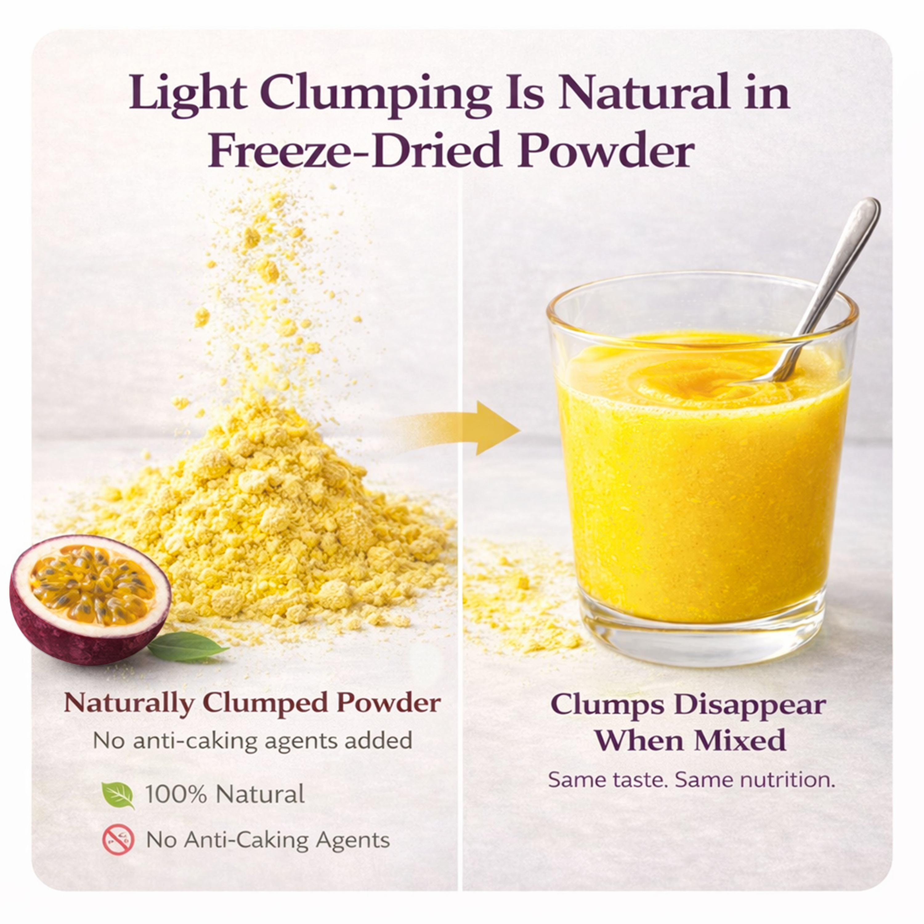 Bột chanh dây sấy thăng hoa được sản xuất từ những trái chanh dây chín tự nhiên, tuyển chọn kỹ lưỡng và xử lý bằng công nghệ sấy thăng hoa hiện đại. Quy trình này giúp giữ trọn hương vị chua ngọt đặc trưng, màu sắc tự nhiên cùng các dưỡng chất quý giá như vitamin C, chất chống oxy hóa và khoáng chất. Sản phẩm có kết cấu mịn, dễ hòa tan, phù hợp cho ngành thực phẩm, đồ uống, dinh dưỡng và mỹ phẩm thiên nhiên.